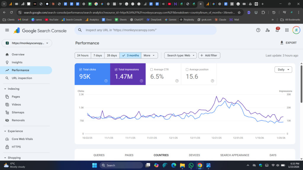 The growth isn’t slowing down. In just the last 3 months, the site generated 95,000 Organic Clicks and 1.47M Impressions, solidifying the brand as a market leader.